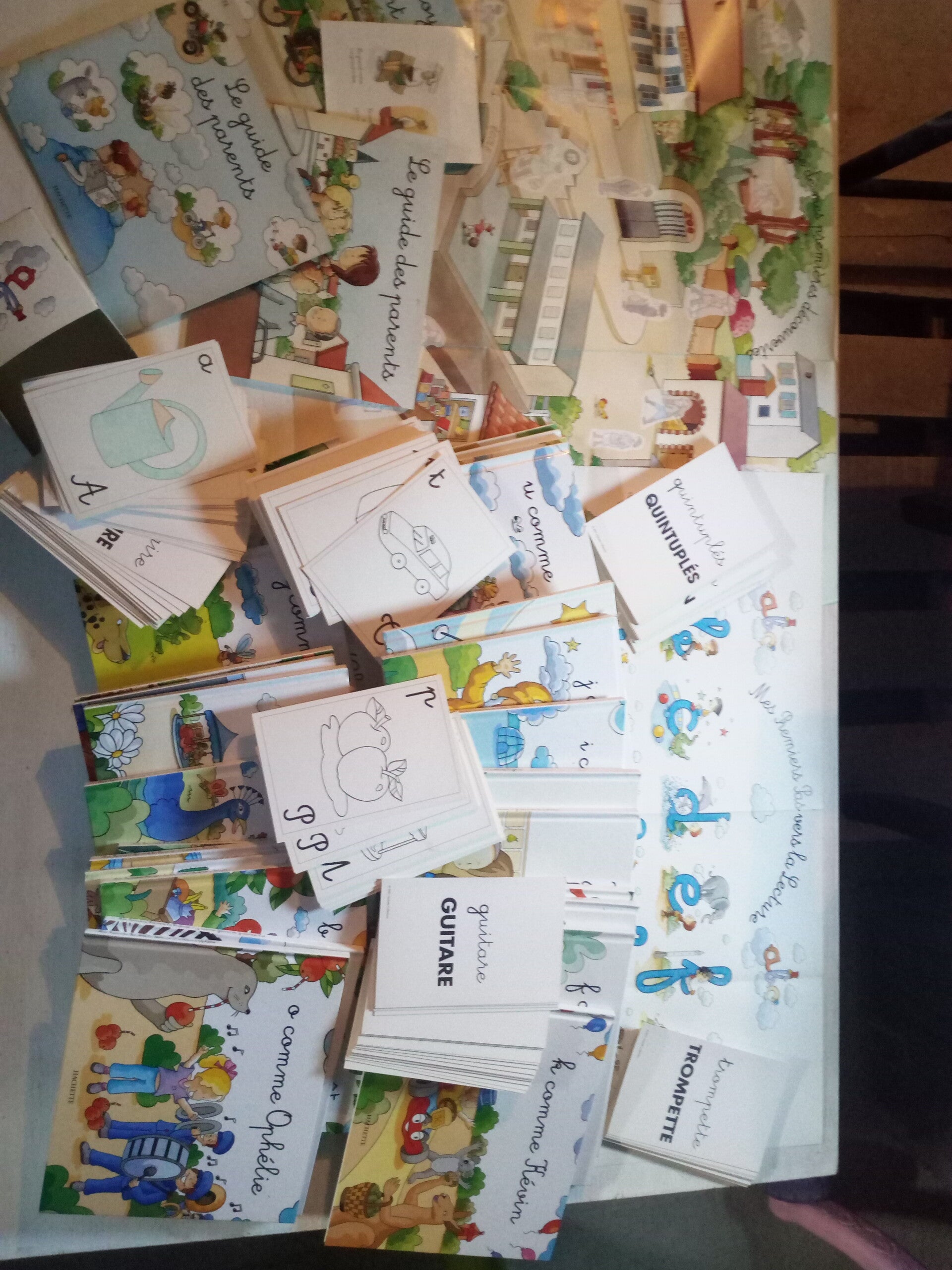 Collection complète "Mes premiers pas vers la lecture" de Hachette. Cette collection est composée de 25 livres pour apprendre à lire + une affiche poster pour servir de carte mentale afin de mémoriser les lettres + un guide pour les parents + plusieurs dizaines de fiches lettres à colorier. Cette collection est idéales pour les CP et CE1. Chaque livre raconte une histoire composée de nombreux mots commençant par la lettre choisie. Attention, le lot pèse vraiment très lourd (plus de 5 kg) car les livres sont cartonnés.