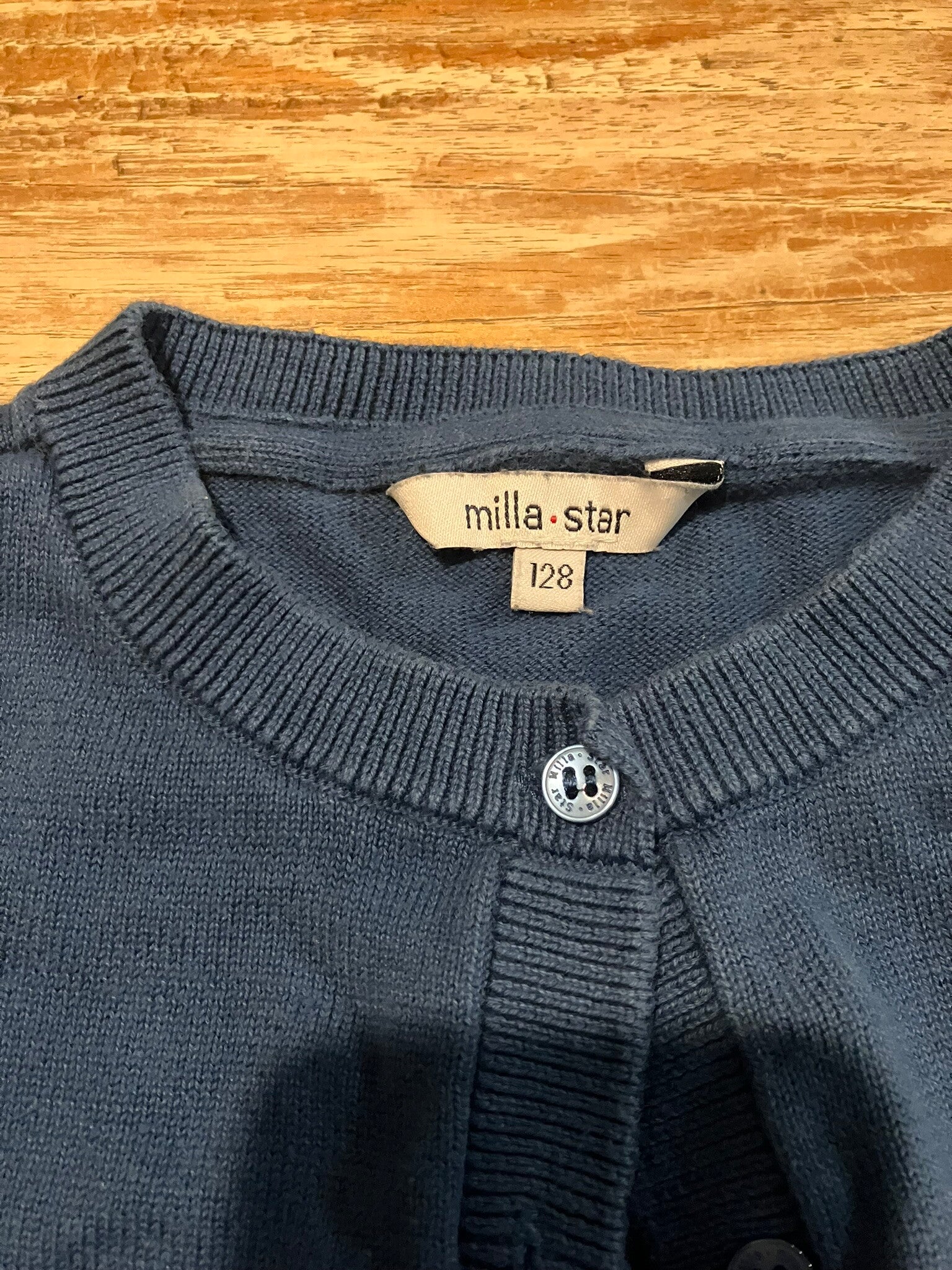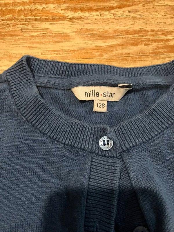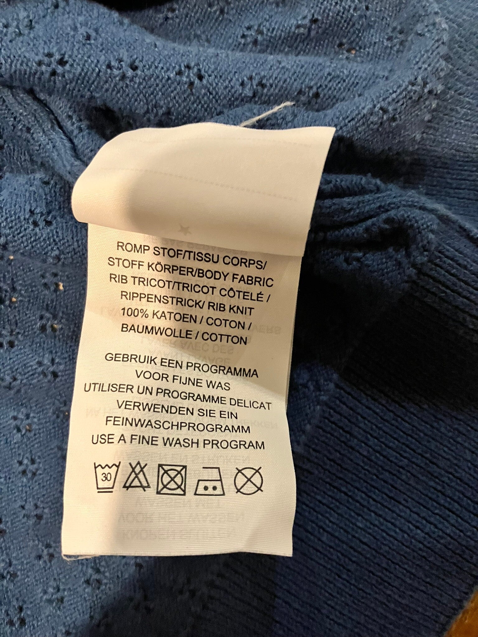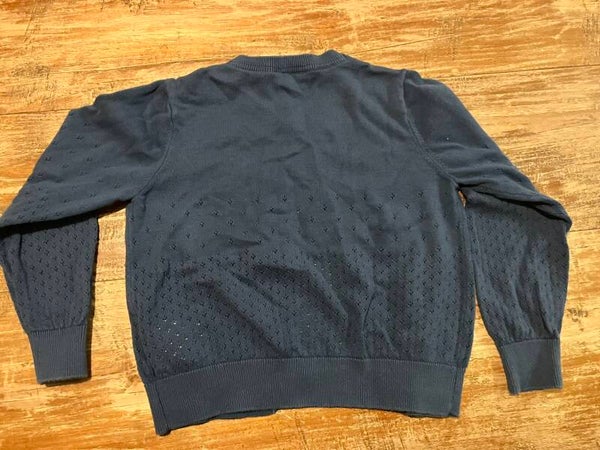 Leuk blauwe tricot om over een kleedje te dragenvoorzien van knopen (reserveknop is er ook nog bij)katoen