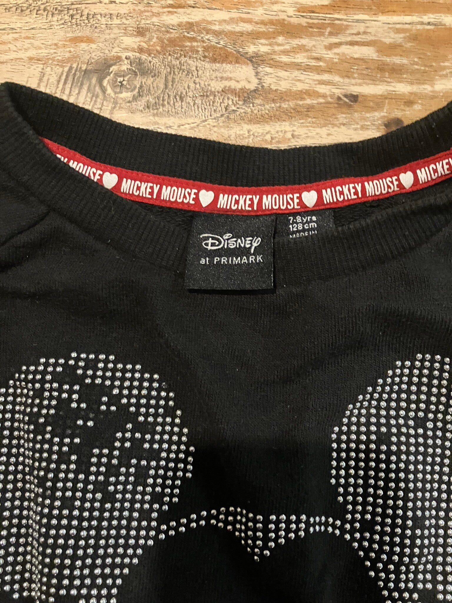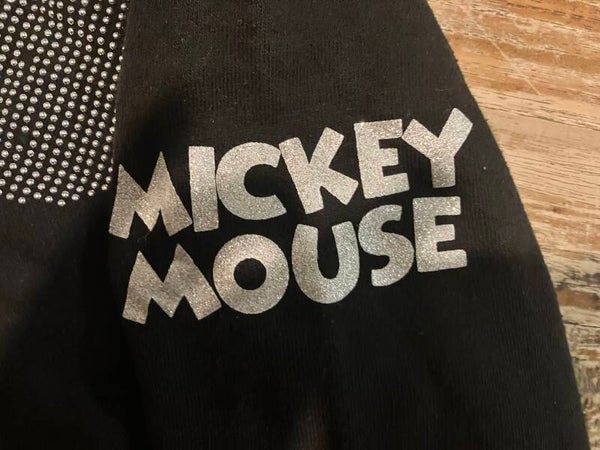 Zeer leuke cropp trui voorzijde Mickey (enkele steentjes zijn door het vele wassen weg)mouw tekstprintkatoen/polyester